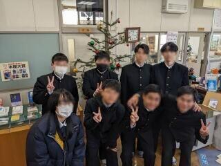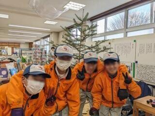 本校図書室で毎年設置しているクリスマスツリーは、森林科学コースの生徒の皆さんが演習林からもみの木を切り出し設置してくれます。