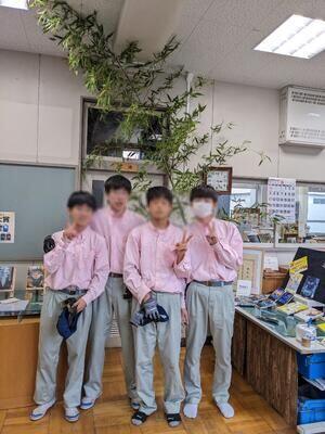 先日森林の青木先生率いる2AGの皆さんが、小雨の降る中竹林から竹を切り出し、図書室に設置してくれました。