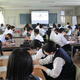 この学習会は海外の子どもたちの置かれた現状を学び、SDGsへの理解を深めるために、農業クラブとの共催で実現しました。講師の山室先生は「絵本を読むことにより、文字が読めるようになり、本を通して世界を知ることができる」とおっしゃっていました。特に「字を読めることは命を守ることにつながる」、「私たちの支援が必要のない社会になることが願い」というお話は印象的でした。絵本に翻訳シールを貼る作業を行う農業クラブ、JRC部、ユネスコスクール係のみなさん(約80名)が参加し、メモを取りながら熱心に聞いていました。